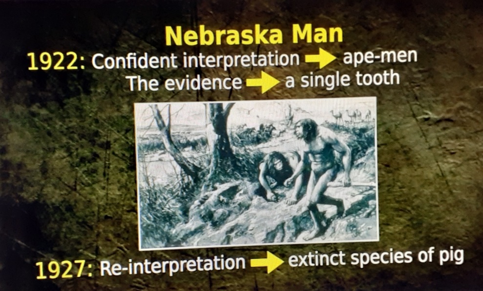 In 1922, 10 years after the famous Piltdown Man “Discovery,” the single tooth of an extinct pig was discovered. (A herd of these “extinct” peccaries were found living in Paraguay in 1972.) Scientists applied wild imagination to “prove” the existence of a prehistoric race in America. Though useful for the Scopes Monkey Trial, when the truth about Nebraska Man was revealed, it received very little publicity. (Because these embarrassing retractions don’t support the humanist narrative, they never seem to receive the same fanfare and headlines that accompany important evolutionary “discoveries.”) The scenario repeated itself in the 1920s when a horse tooth was used to fancifully create the Southwest Colorado Man. Scott Huse writes in The Collapse of Evolution p.135 (1983), “Give them one tooth, not necessarily human, and scientists can create an entire race of prehistoric humanity.” (Like Mormon doctrine, scientific facts are constantly changing, and theories are being revised; isn’t it interesting that the anvil of the Bible never changes as “little man’s” humanist hammers lie broken all around!)