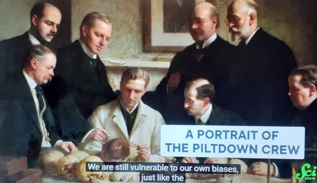 The now infamous Piltdown Man Hoax was perpetrated on the world by amateur fossilologist Charles Dawson and young French Jesuit Priest Pierre Tielhard de Chardin. Tielhard would later become a world renowned mystic whose work would lead the Catholic Church (and the world!) down a heretical modern “New Age” path. Dawson’s “discovery” of the missing link, or the “First Englishman,” was considered the most important archeological find in history. Dawson’s clumsy, “ham handed,” amateurish attempt at fakery, consisting of a stained skull, an altered broken orangutan jaw, and filed down teeth should have been recognized immediately as an obvious fraud. The fact that it “passed muster” with the scientific community has to be considered the most significant case of confirmation bias in history. (Musician Ray Davies’ mantra, “Give the people what they want and they’ll get what they deserve” never proved more true.)